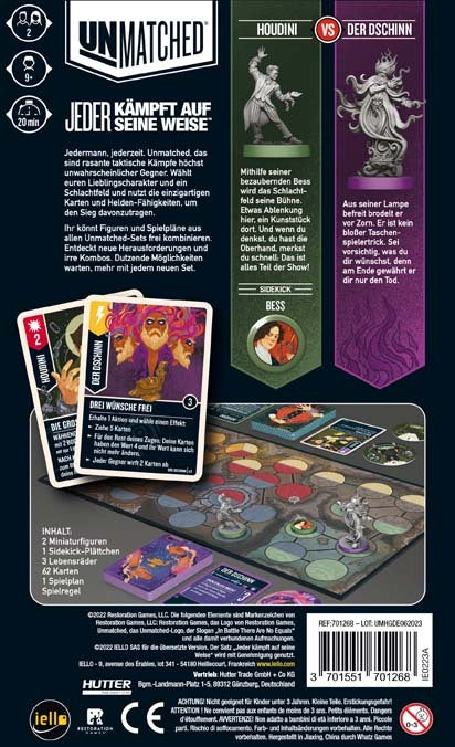 Houdini ist vielleicht der größte Illusionist aller Zeiten und ein neuer Held im Unmatched-Universum. Mit wem hast du es wirklich zu tun, mit einem grimmigen Magier oder seinem reizenden Gehilfen?