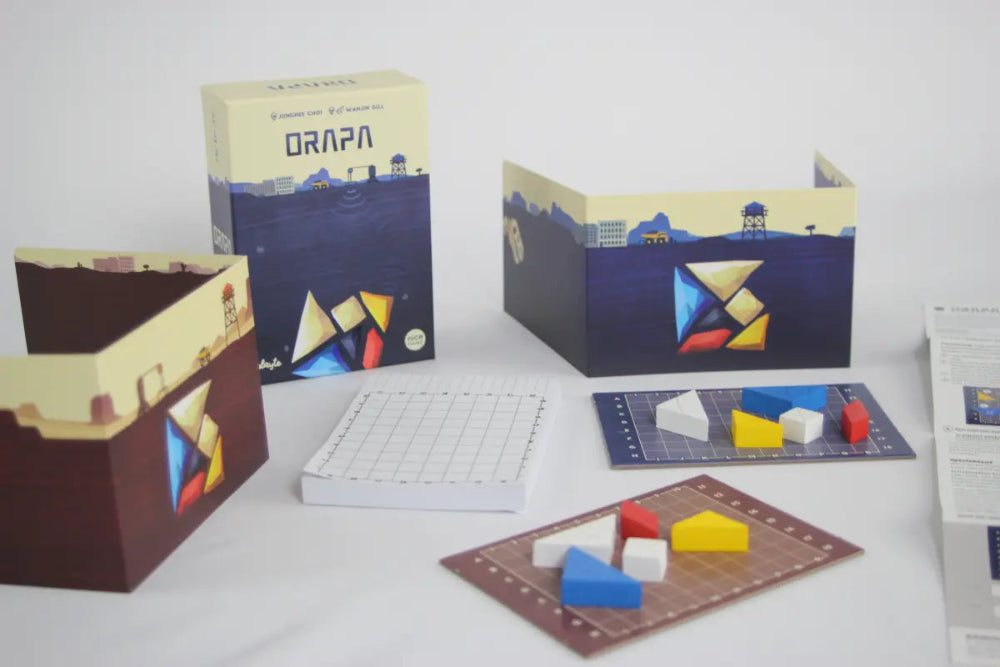 Orapa erinnert entfernt an Schiffe versenken, denn auch hier gilt es durch geschicktes Abfragen die Position der Edelsteine auf dem gegenüberliegenden Plan zu ermitteln. Jedoch ist hier ein wenig mehr Um-die-Ecke-Denken erfordert, da ein Strahl von einer Seite losgeschickt wird und dann an den Edelsteinen abprallt und ggf. die Farbe ändert. Rot und Blau geben z.B. zusammen lila und dann ist noch relevant an welcher Stelle der Strahl wieder austritt. Sehr spannend und reizvoll für alle, die gerne ein wenig knobeln und (noch) ein kleiner Geheimtipp.