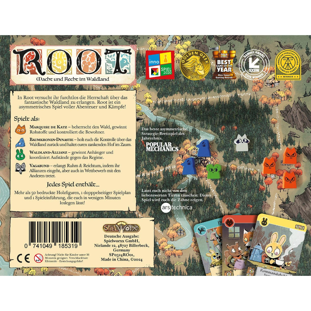 In Root versuchen zwei bis vier unerschrockene Spieler, die Herrschaft über ein fantastisches Reich des Waldes zu erlangen. Das ultimative asymmetrische Spiel voller Abenteuer und Kampf.